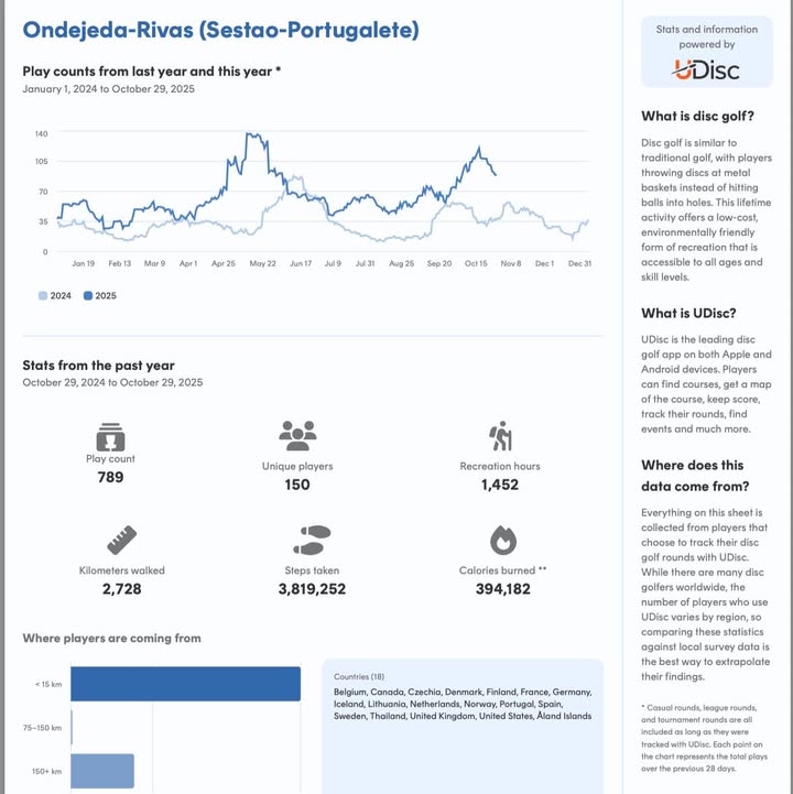 • Disc Golf Metrix → monthly usage graph for rounds played